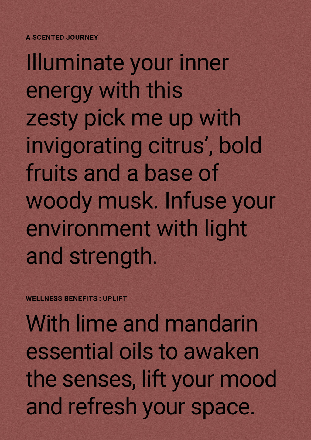 Definitely an uplifting scent. Lovely bold fragrance that lasts. I love spraying this all over the house.